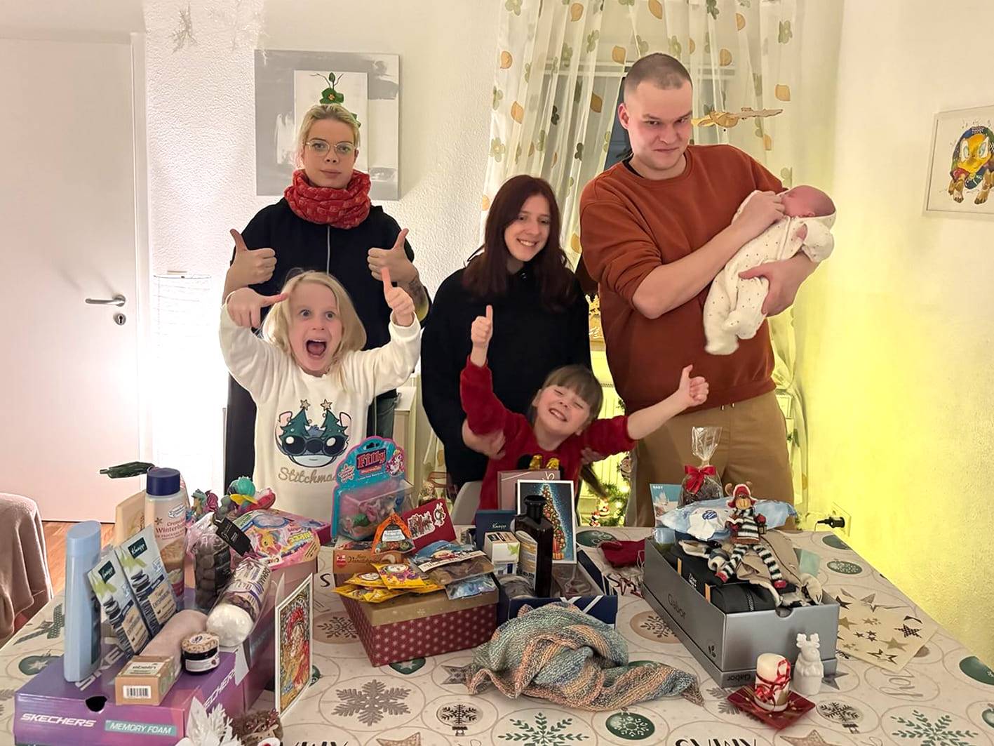 Diese 34 Menschen (Erwachsene und Jugendliche) werden in sechs Einrichtungen der Volkssolidarität betreut. Nachdem wir in den Einrichtungen die Wünsche abgefragt haben, wurden diese mit bewundernswerter Gebe-Bereitschaft erfüllt, in hübsch dekorierte Kartons eingepackt und am 15.12.2025 in die Uckermark gebracht. Dort wurden sie bis Weihnachten verteilt und haben kleine und große Empfänger glücklich gemacht.